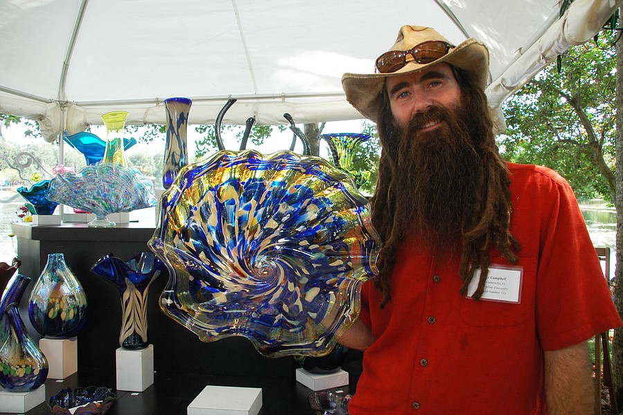 Photo by: Isaac Babcock - Somewhere Glassworks' Sky Campbell shows off some of his work at the Maitland Art Festival.