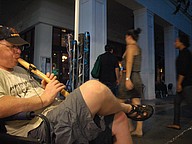 Photo by: Isaac Babcock - "Spider" of Spidersong Flutes plays for the passing crowd.