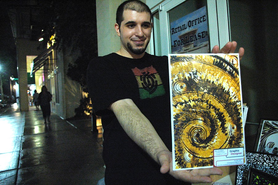 Photo by: Isaac Babcock - Graphic artist Brian Ranaghan shows off some of his work at Baldwin Park.