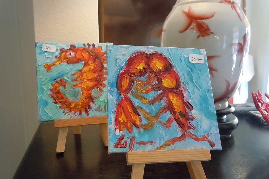 Small sea life works at DeVane's in Hannibal Square from Local artist Heidi Lifrage.