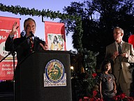 Bob Opsahl was master of ceremonies for the lighting of the tree he donated decades ago to Winter Park, where it has lit up the season ever since in Central Park.