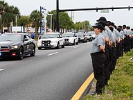 Photo by: Seminole State College - Seminole State College criminal justice academy students on March 27 watch the funeral procession for Windermere Police Officer Robert German, who was killed in the line of duty on March 22.