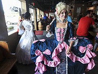 Mary Beth McKenzie, playing the role of Marie Antoinette, wanders about Redlight Redlight.