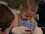 Paisley Lux, 4, gets a temporary tattoo at the Winter Park Library Summer Reading Kickoff Saturday. Paisley is attending Science Center Preschool, and she loves Beauty and the Beast and following along to CD books.