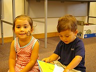Brother and sister Claire, 3, and Luke, 2, Zeliadt look at books at the Winter Park Library Summer Reading Kickoff. Claire has been coming to the library since she was six months old, and the staff knows her family by name.