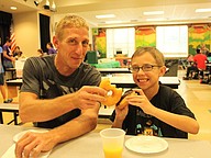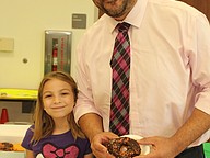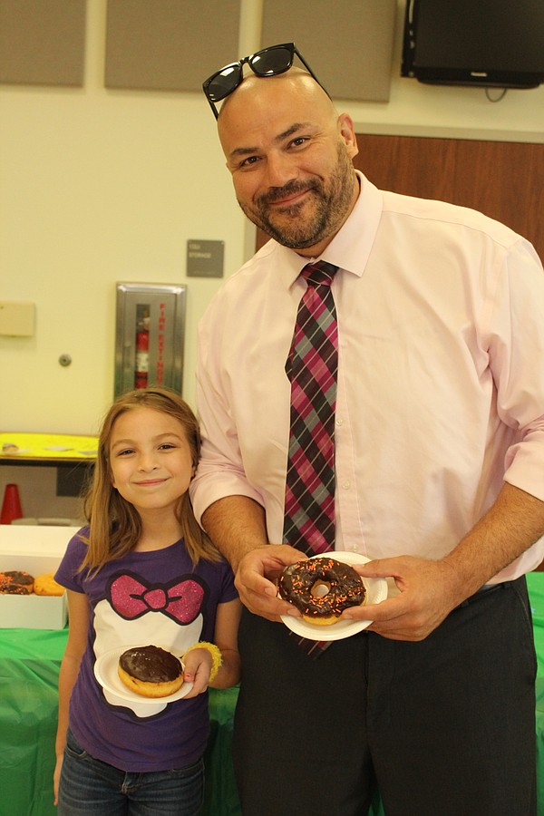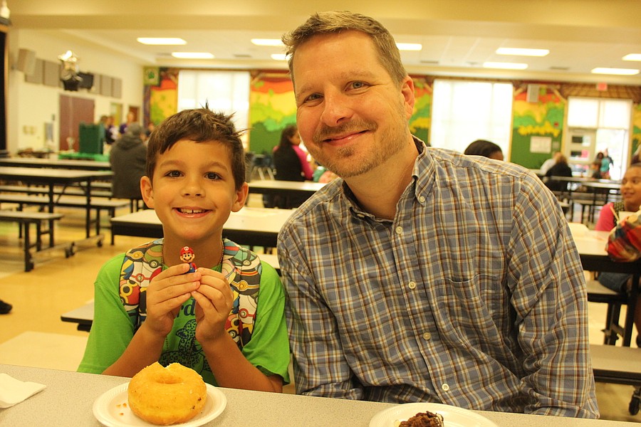Michael Umphreys and his third-grader Chase loved their donuts.