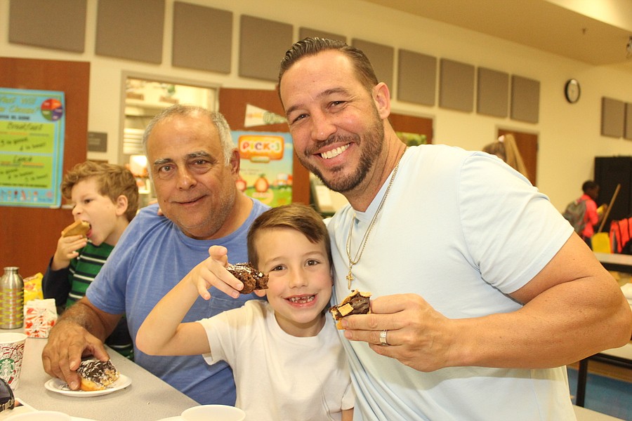 Grampa Mike Forte, second-grader Ian Adamich II and his dad Ian were three generations of donut fans.
