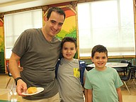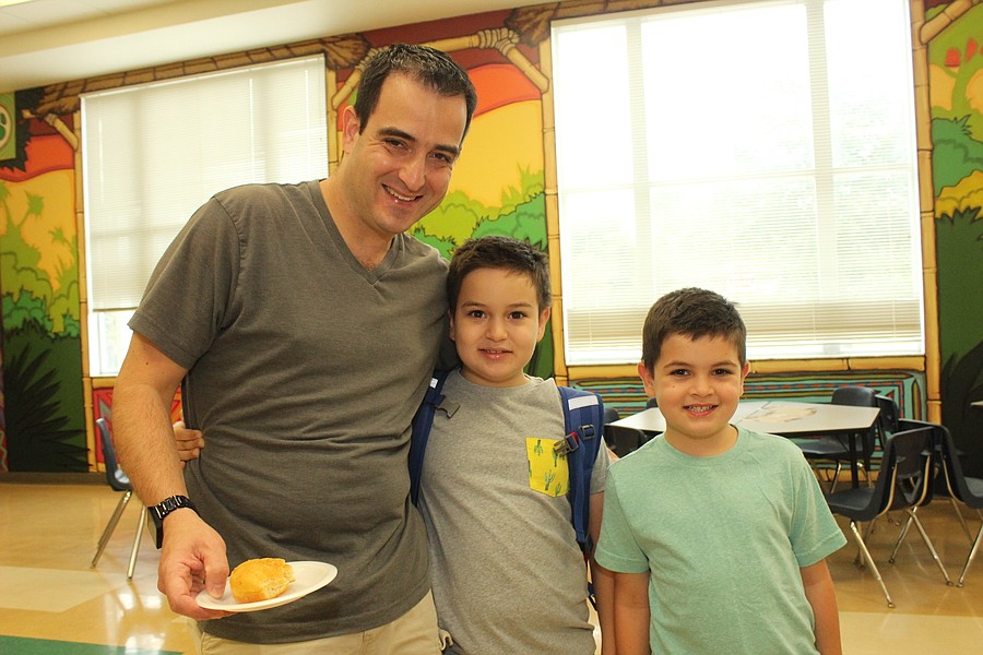 Josh Goldberg munched on donuts with his two sons Eli and Ari.