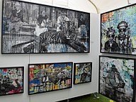 Colorful, abstract drawings created using a mixture of charcoal and oil pastels adorns booth 139 featuring artwork by Collin Margerum from Winter Springs.