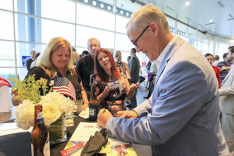 Visitors to the Political Mingle in Winter Park take part in a straw poll to give candidates a chance to see a sample of where they stand in the polls.