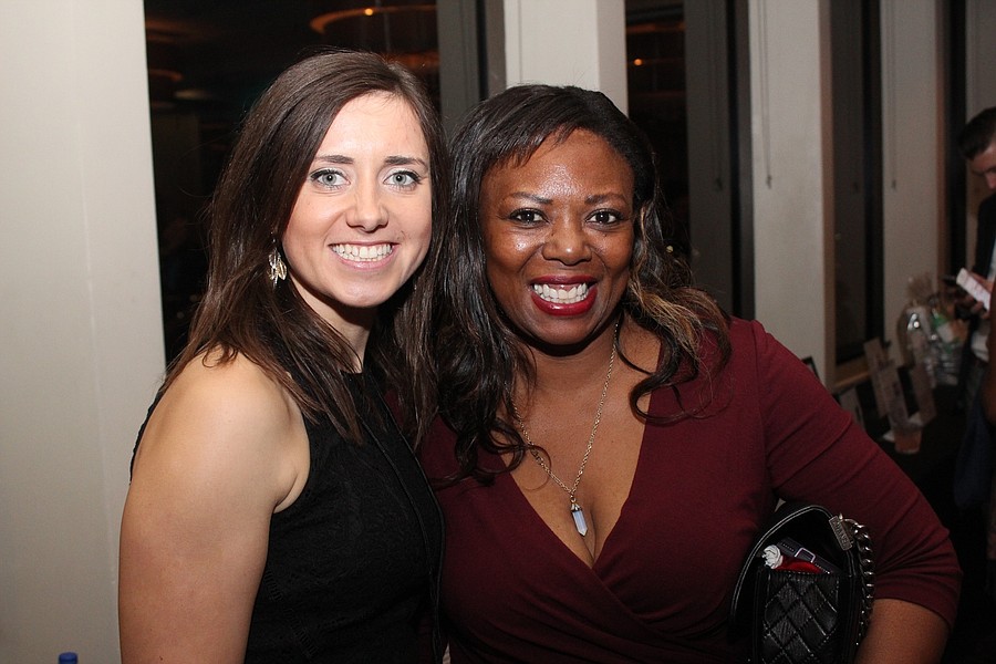 Event volunteer Kauma Kadike and Tyna Green-Seall talked near the silent auction.