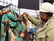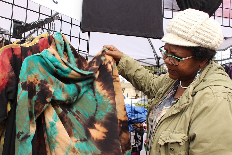 Nan Johnson inspected the clothes at her booth.