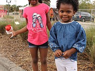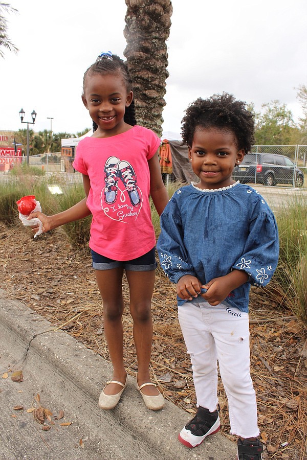 Janila Franklin, 6, snacked on a candy apple with Jerry Chenult, 3.