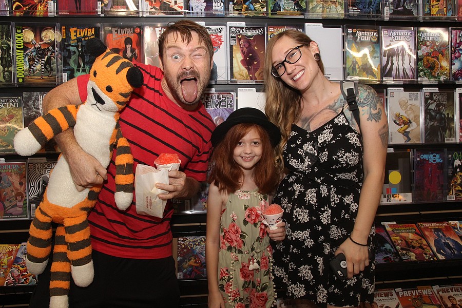 Elijah Chancellor, 9, and his dad Dan checked out some action figures.