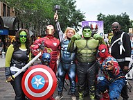 Reba Blanton, Earnest Logan, Kyle Claypool, Sean Gaines, Jermaine Goodson, Justin Falk, Felix Raudales and Larry Sylvester of the Winter Park Streets Division sported an Avengers theme for their table.