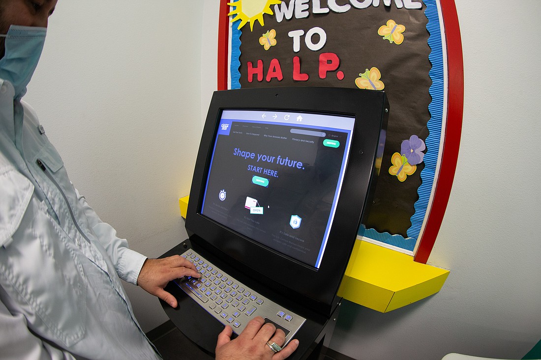 There is staff at each center to help anyone who wants to use the kiosks. The Maxey Center is open from 8:30 a.m. to 5 p.m. weekdays.