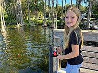 Clara White, 10, practiced her casting skills on the dock.