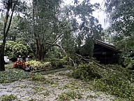 A tree fell on the roof of the Berkshire Hathaway building in downtown Windermere.