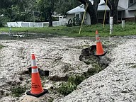 The ground heavily eroded at East Seventh Avenue and Magnolia Street in Windermere.