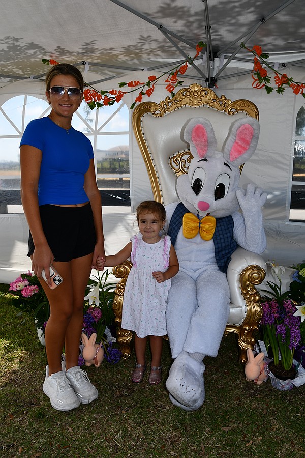 Melanie Stuart held onto 15-month-old Olivia Stuart as she greeted the Easter Bunny.