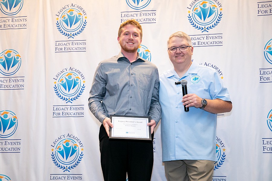 William Mizzoni, left, received the Legacy President’s Award, from Legacy President David Terry.