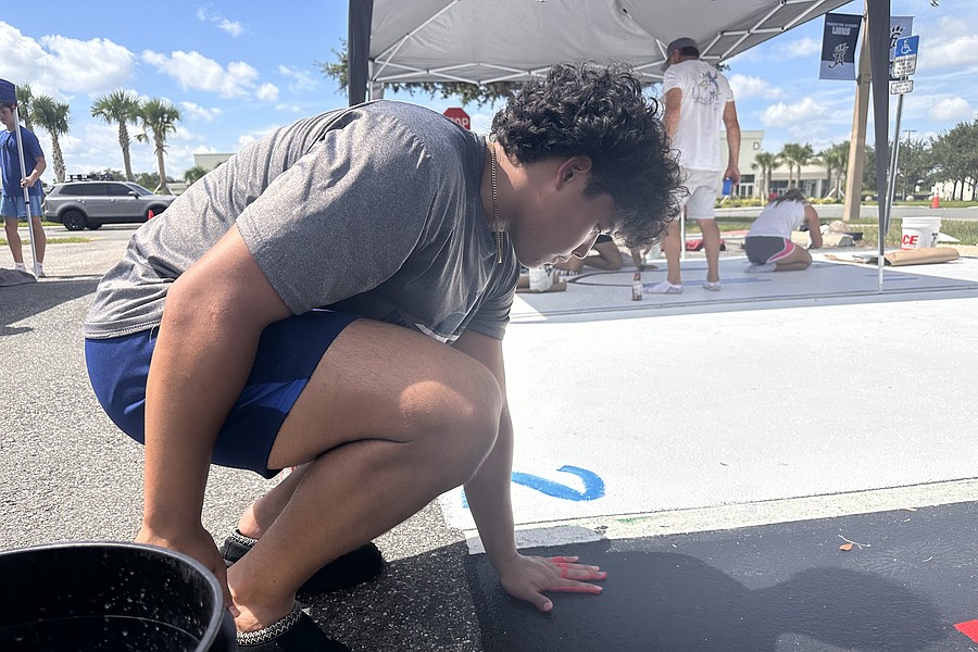 Foundation Academy seniors painted their parking spots for the new school year from 7 a.m. to 1 p.m., Saturday, Aug. 2, at the Tilden campus.