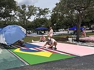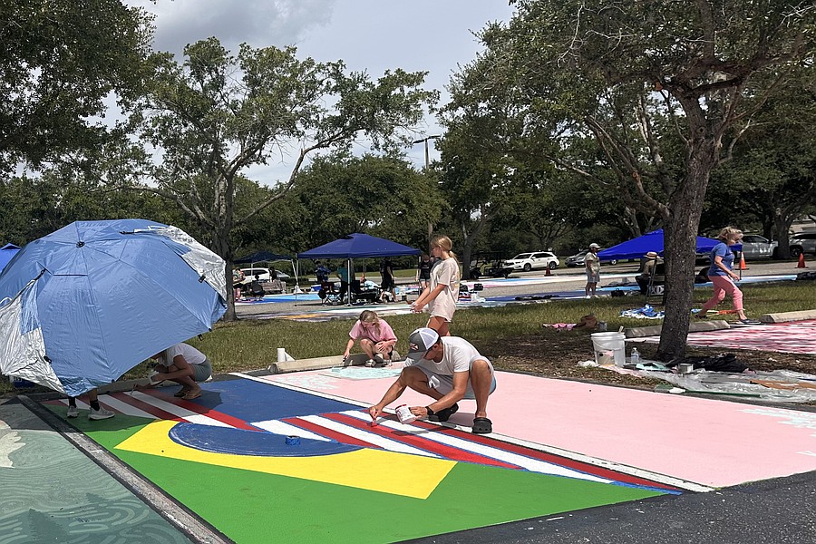 One student and his family painted the Puerto Rican and Brazilian flag for his spot, representing his heritage.