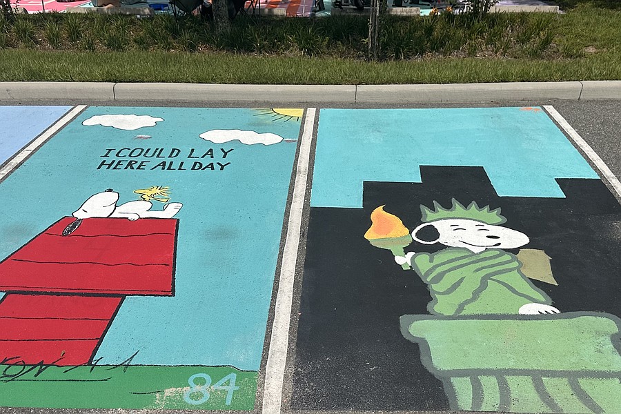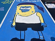 Now, parking spots are filled with bright art, varying from characters like SpongeBob and Snoopy to flowers, flags and memes.