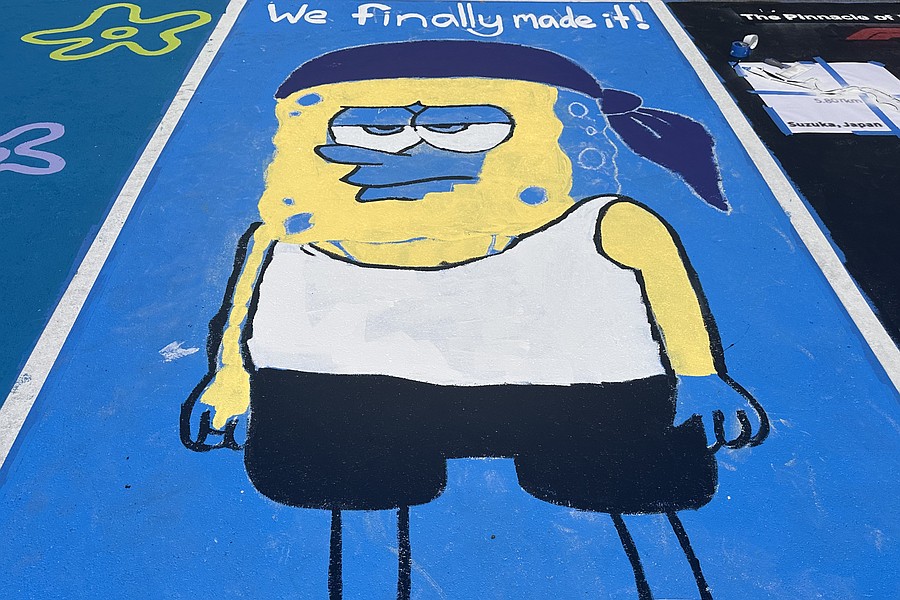 Enzo Larifla chose to paint the character “Spongebob” wearing a durag, with the words “We finally made it!” on it.