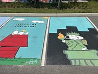 Two students next to each other chose the character “Snoopy” to be the face of their parking spots.