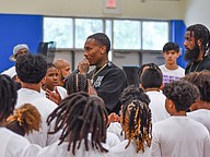 Global Not Local founder Wendell Coates Jr. spoke to a group of children during the free basketball camp.