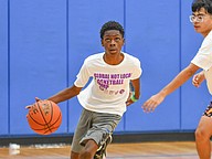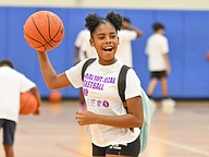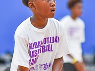 Landen Brunson stared down the hoop before taking a shot at the youth basketball camp.