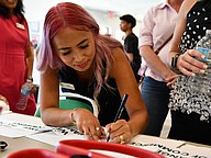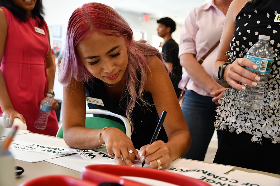 Hi-Lite Academy coach Diana Tran signed the West Orange Chamber of Commerce ribbon. "This has been a long time coming, and I'm so happy," Tran said. "It's really a wonderful resource."