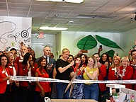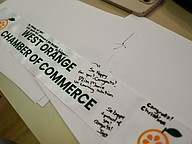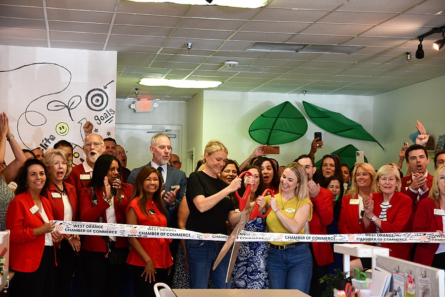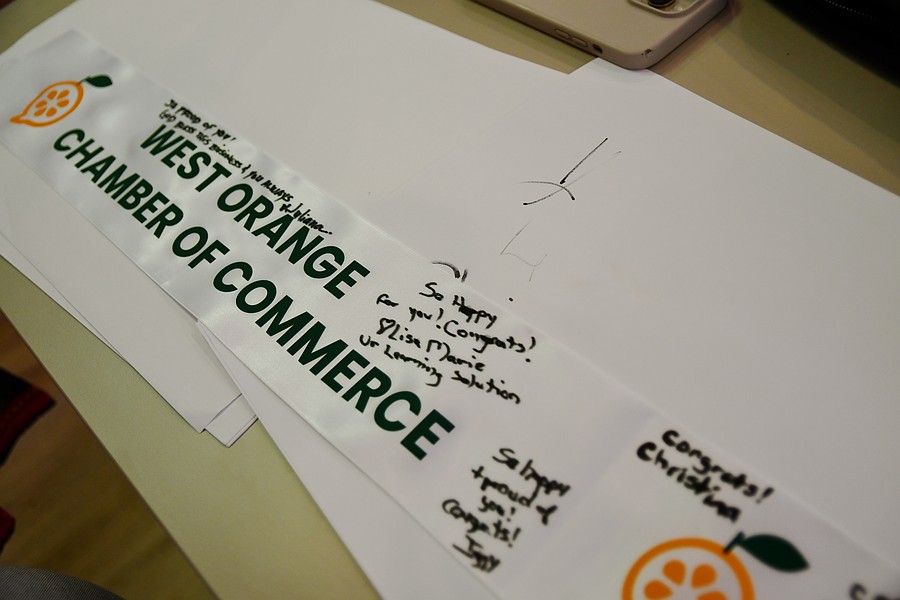 Community members and West Orange Chamber of Commerce ambassadors signed the ribbon for the ribbon cutting, leaving positive messages.
