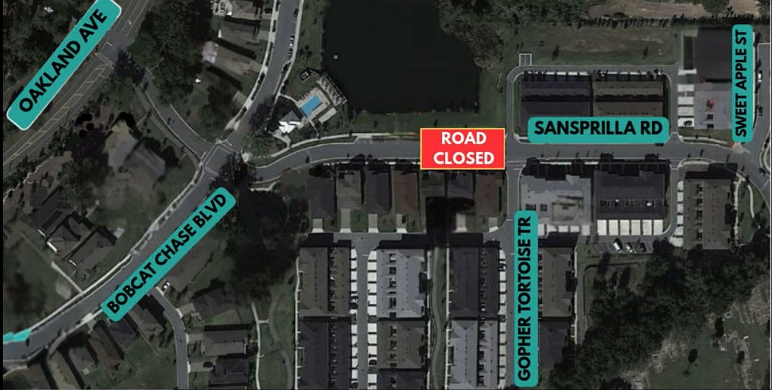 Oakland residents: Starting Monday, Aug. 25, Sansparilla Road between Gopher Tortoise Trail and Bobcat Chase Blvd will be closed.