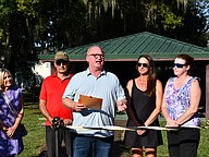 With a hand on the giant scissors, members of Windermere's Parks and Recreation Committee and Windermere Town Council cut the ribbon for the Centennial Walkway at Central Park.