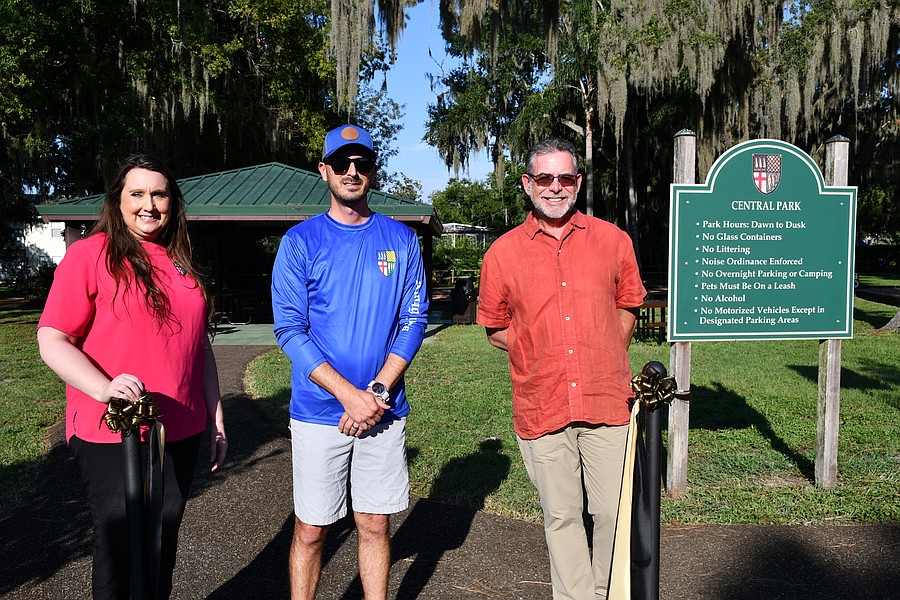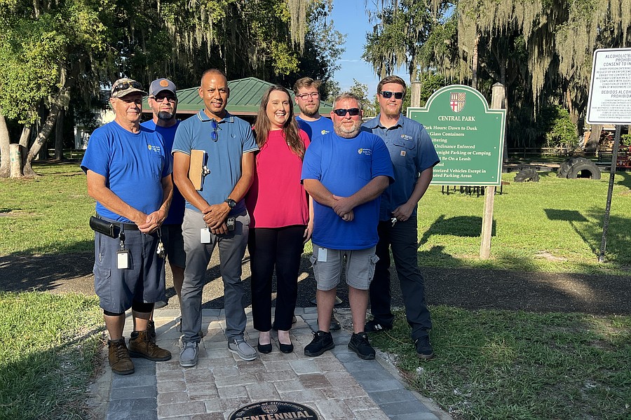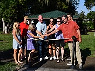 Windermere Parks and Recreation Committee members and Windermere Town Council members cut the ribbon to celebrate the Centennial Walkway at Central Park.