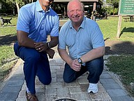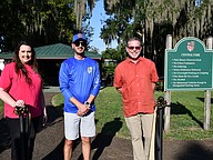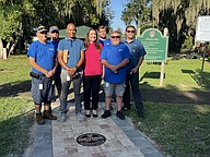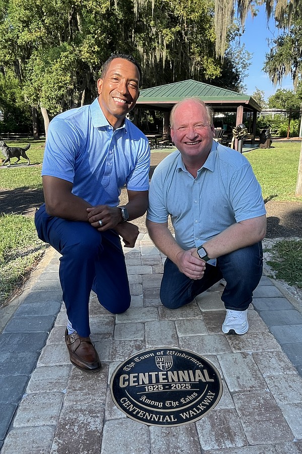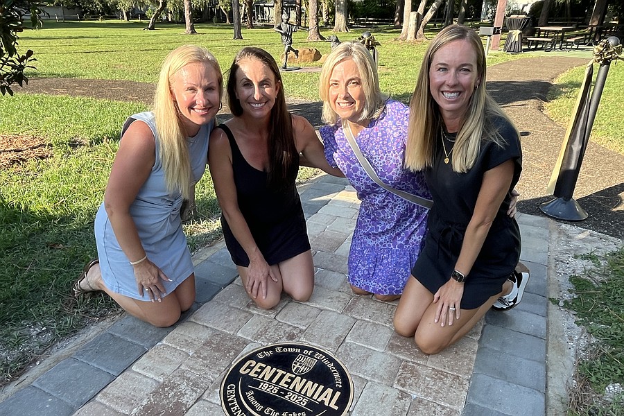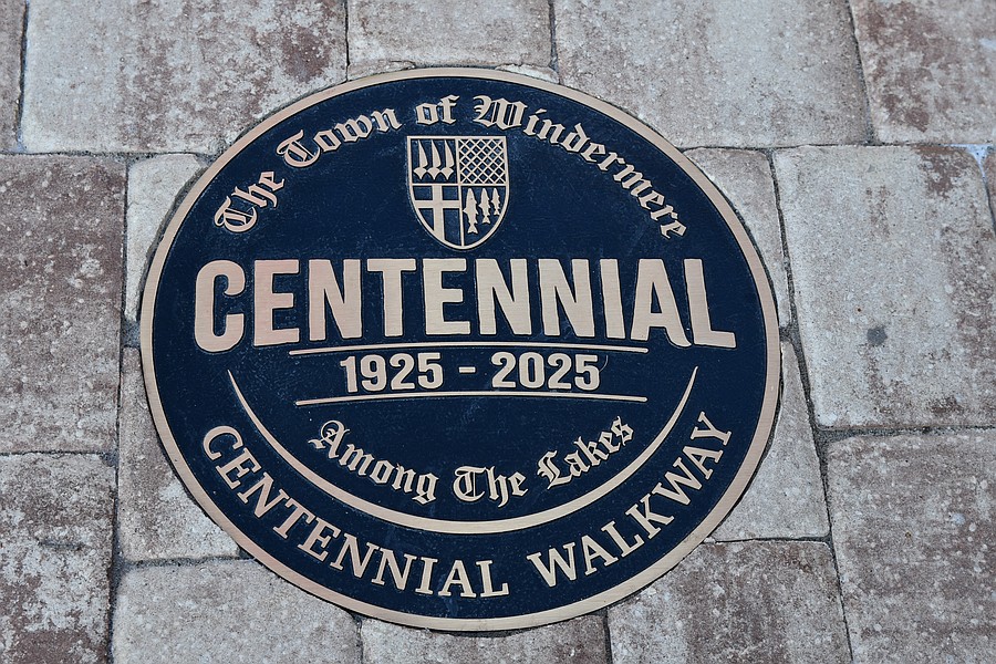 Members of Windermere Centennial committee Tonya Elliott-Moore, Chris Sapp and Andy Williams were proud to have the centennial medallion unveiled at the walkway at Central Park.