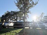Five centennial trees have been planted at Central Park. Each is marked with a plaque.