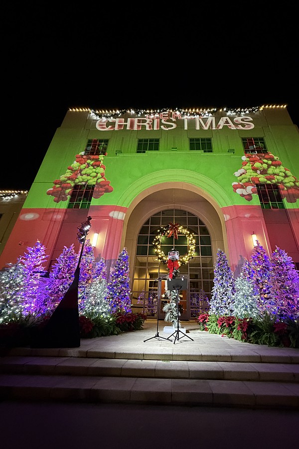 Lights were projected onto City Hall. The Merry Winter Garden Light Show will be shown on a loop starting at 6 p.m. on select nights in December.