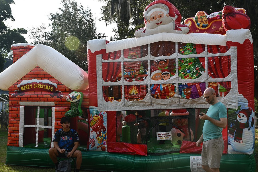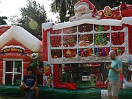 Children enjoyed bounce houses that were Christmas themed.