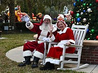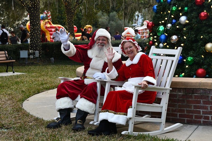 Santa Claus and Mrs. Claus waved to crowd waiting to meet them.