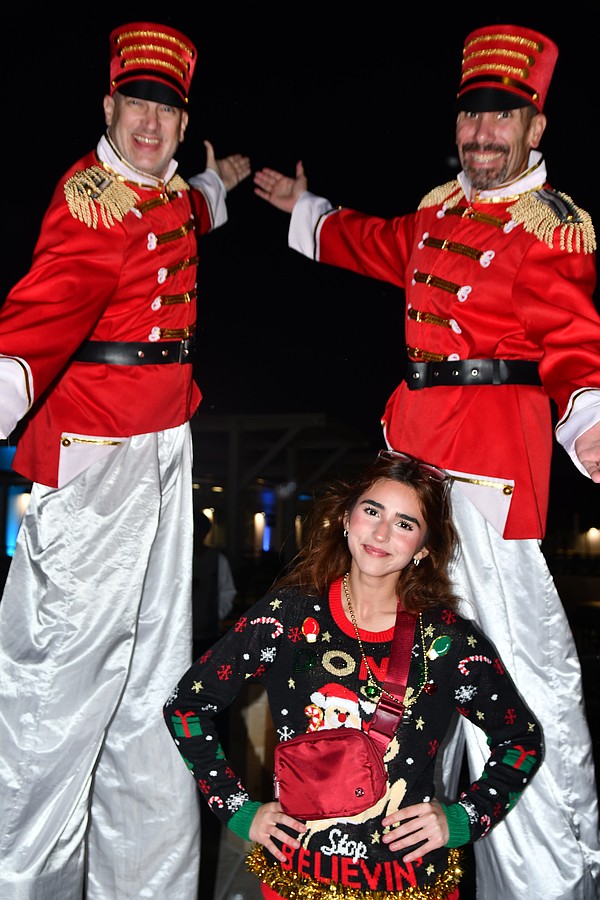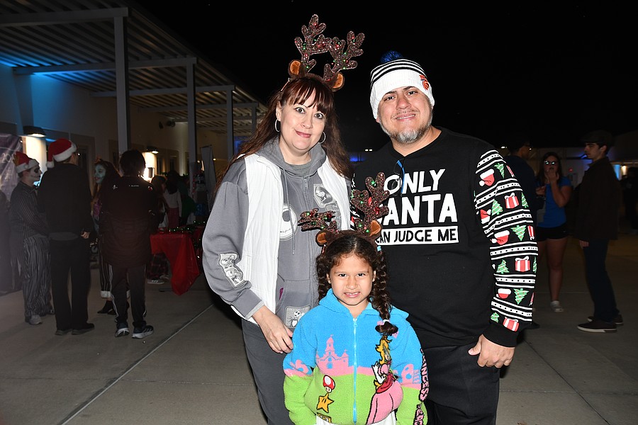 Carla, Liszeth and Darwin Lima dressed in Christmas attire to attend the event.