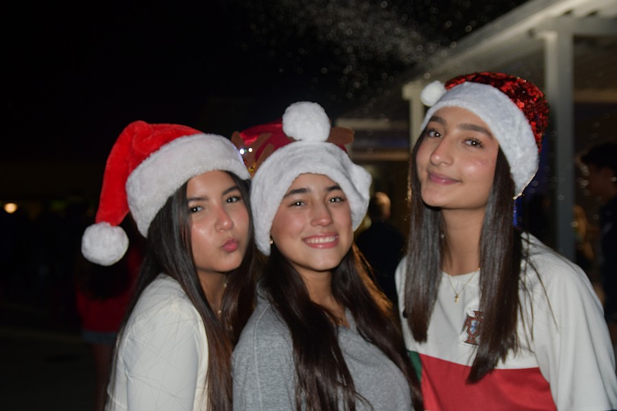 Isabella Petit, Nicole Pina and Camila Parra wore Santa hats.