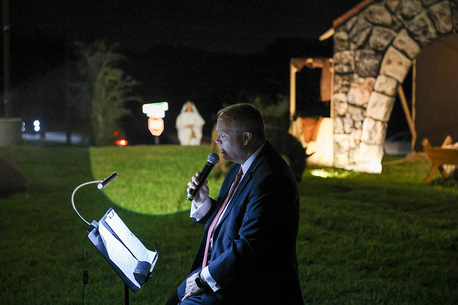 Gary Hansen, president of the Winter Garden Stake of The Church of Jesus Christ of Latter-day Saints, read the Bible Nativity story as narrator for the first showtime.