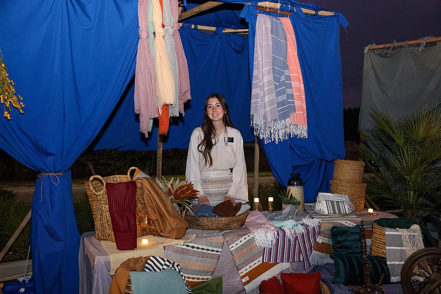 Guests then continued on through the gates to walk past animals including three Highland miniature cows, miniature donkeys, a miniature horse, a turkey, a bunny, a goat and other animals. FFA students from West Orange High School, Horizon High School and Hamlin Middle School dressed as shepherds and managed the animals throughout the evening. After walking past the animals, guests walked through a “Bethlehem open market” scene and onward to the show.