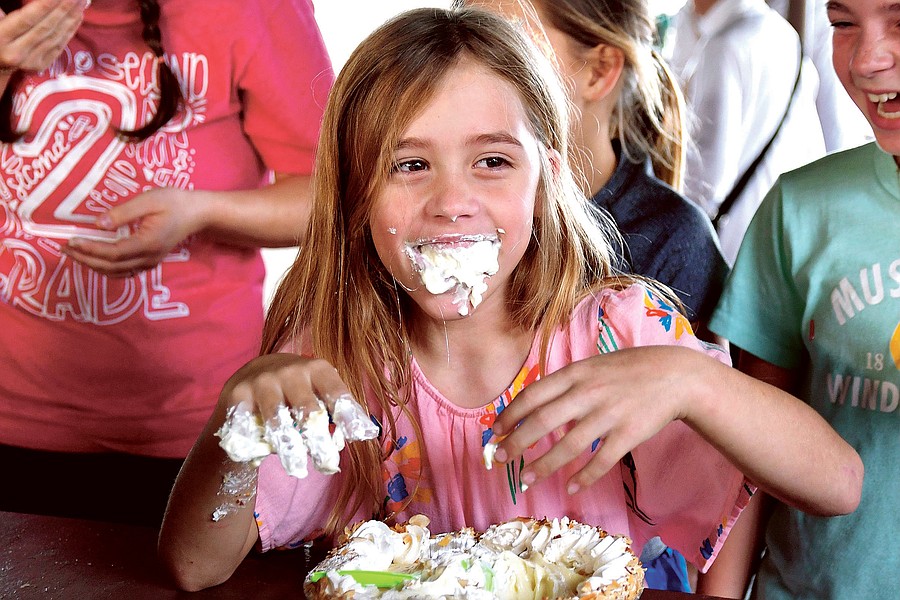 London Hudson, a second-grader at Windermere Elementary, competed in a pie-eating contest at the school’s Family Festival Saturday, March 1.