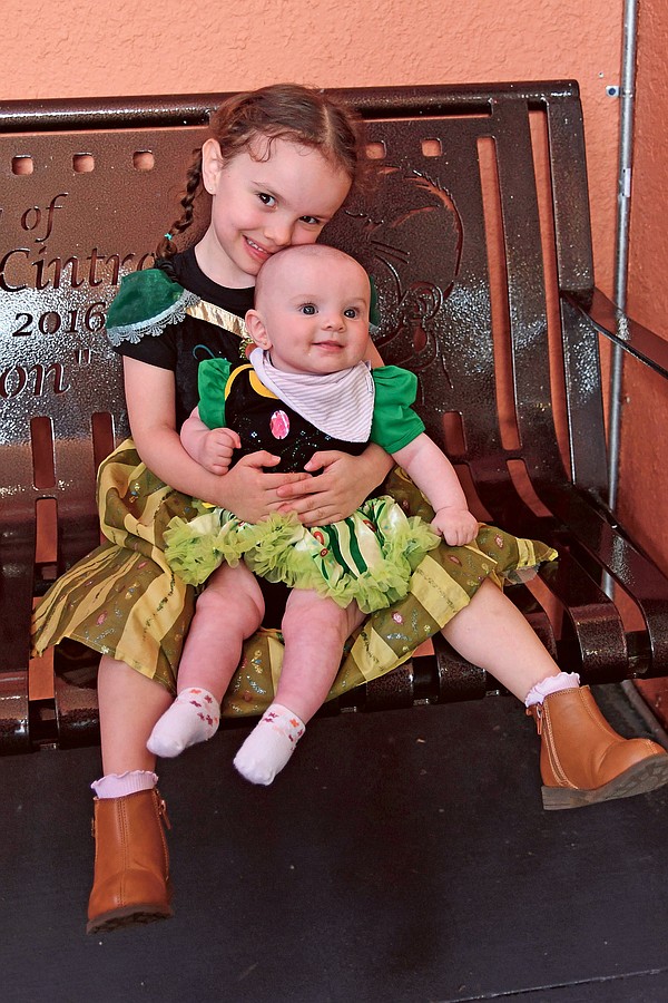 Olivia Berman, 4, and her 4-month-old sister, Maya Berman, both dressed as Ana for the Rosen JCC’s Purim Pop-Up Friday, March 14.