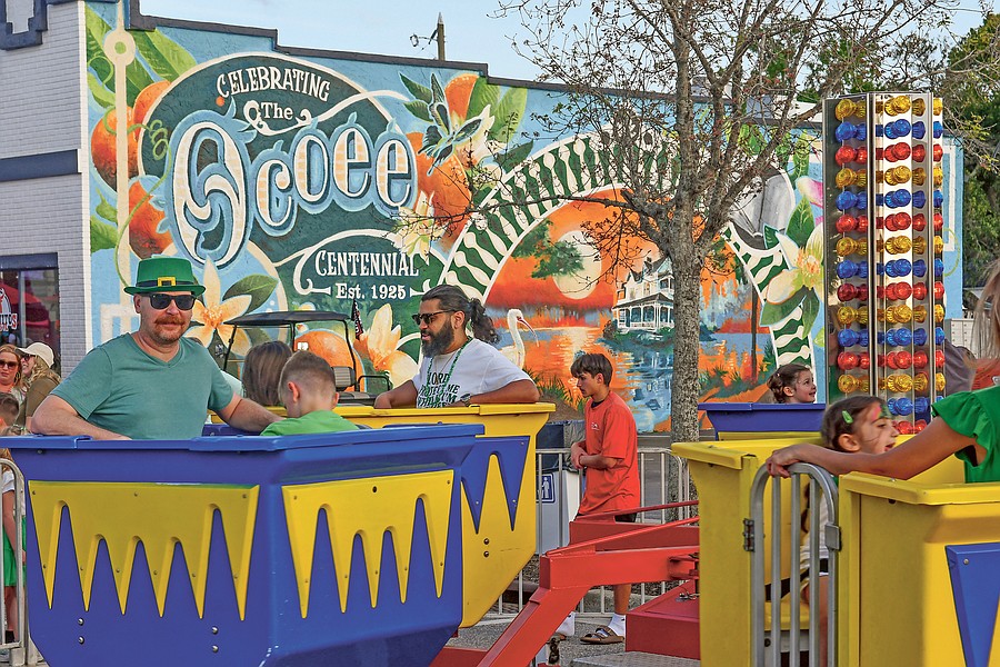 In the shadow of the McKey Street Centennial Mural, event-goers got to enjoy a carnival ride at Ocoee’s Centennial St. Patrick’s Day Block Party March 14.