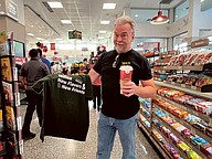Ocoee’s Don Bedwell was the first in line at the grand opening of Wawa. He was thrilled to receive his free cup of coffee and T-shirt.
